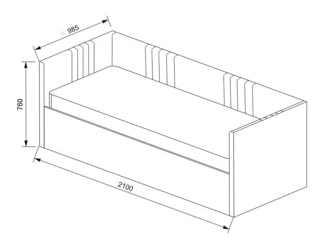 Габаритные размеры (ВхШхГ): 760 х 2100 х 985 мм
