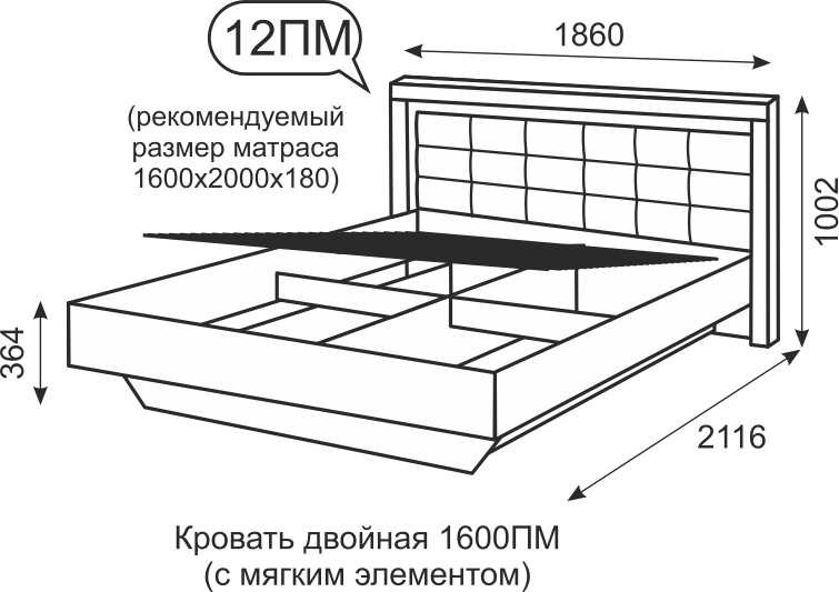 "Люмен" Кровать двуспальная 160 мод.12ПМ