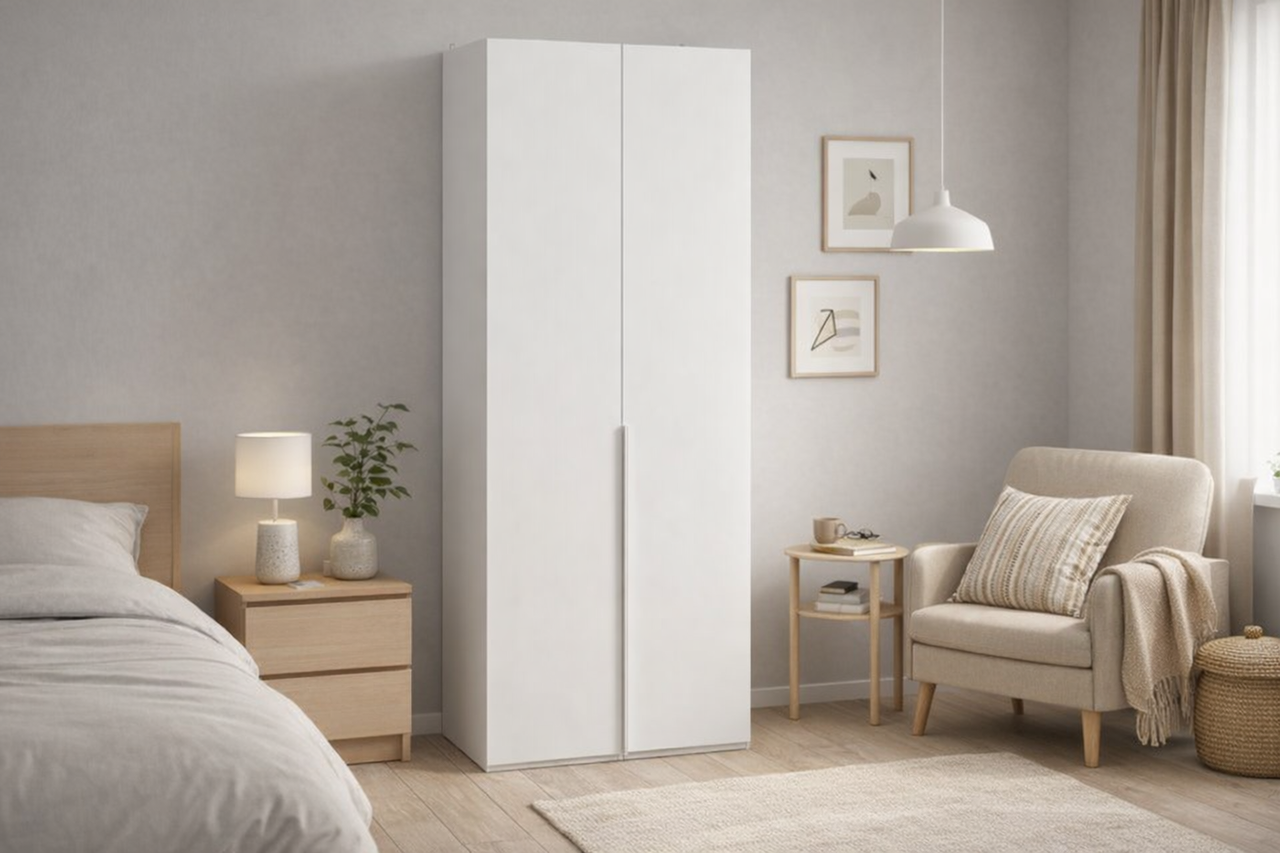 Шкаф для одежды (580) с 2 глухими дверями «Порто» Белый Жемчуг, Белый софт (ТД-102.07.02 + ТД-393.07.11 2шт)